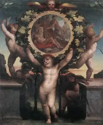 Putti Bearing a Tondo Showing the Drunkenness of Noah is an oil painting on panel executed c. 1522–1523 by the Italian Renaissance painter Domenico Beccafumi.