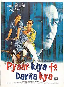 Pyaar Kiya To Darna Kya (transl. Why be afraid if you loved someone?) is a 1998 Indian Hindi-language romantic comedy film. Written and directed by Sohail Khan, the film stars his real-life brothers Salman Khan and Arbaaz Khan, with Kajol as the female lead, alongside Dharmendra in a pivotal role.