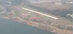 The current heliport has a much larger runway, than the previous one, measuring approximately 800 m (2,600 ft) in length,[6] which is long enough to accommodate many light aircraft,[7] which have been seen to visit the site and also the heliport has the notable feature of a large walled compound, 360 m (1,180 ft) in length, featuring a football pitch and a basketball court, added in October 2015.[8]