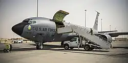 During the 2017 Qatar diplomatic crisis, the United States President Donald Trump claimed credit for engineering the diplomatic crisis in a series of tweets.[8] On 6 June, Trump began by tweeting: "During my recent trip to the Middle East I stated that there can no longer be funding of Radical Ideology. Leaders pointed to Qatar – look!"[9][8] An hour and a half later, he remarked on Twitter that it was "good to see the Saudi Arabia visit with the King and 50 countries already paying off. They said they would take a hard line on funding extremism, and all reference [sic] was pointing to Qatar. Perhaps this will be the beginning of the end to the horror of terrorism!"[10][11][12] This was in contrast to attempts by The Pentagon and State department to remain neutral. The Pentagon praised Qatar for hosting the Al Udeid Air Base and for its "enduring commitment to regional security." U.S. Ambassador to Qatar, Dana Shell Smith, sent a similar message.[13][14] Earlier, the US Secretary of State had taken a neutral stance and called for dialogue.[15] Qatar hosts about 10,000 U.S. troops at Al Udeid Air Base, which houses the forward operating base of United States Central Command that plays a commanding role in US airstrikes in Syria, Iraq, and Afghanistan.[16][12][17] A Pentagon spokesperson claimed the diplomatic crisis would not affect the US military posture in Qatar.[12][8] On 8 June, President Donald Trump, during a phone call with the Emir of Qatar Tamim bin Hamad Al Thani, offered as a mediator in the conflict with a White House meeting between the parties if necessary.[18] The offer was declined, and Qatari official stated, "The emir has no plans to leave Qatar while the country is under a blockade."[19]