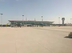 The airport occupies an area of 2,195 mu. It has a runway that is 2,600 meters long and 60 meters wide, and a 10,592-square-metre (114,010 sq ft) terminal building. It is designed to handle 500,000 passengers and 1,200 tons of cargo annually.[2]