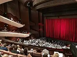 The Lyric Theatre, (2200 seats) was designed for large dramatic productions such as operas, operettas, musicals, ballets and dance performances. It had an orchestra pit, a stalls, two balconies and side aisles. The 1800-seat concert hall was intended for orchestral concerts, choral performances, chamber music, recitals, popular entertainment and ceremonies. A Klais Grand organ with 6500 pipes was installed in the stage area. Its "shoebox" shape, designed to enhance natural acoustics, included an orchestra pit, stalls, a single balcony, side galleries, and side aisles. The studio theatre seated up to 300 for dramatic performances and could be configured in 6 different ways, from conventional setups to theatre in the round. It had a stalls and balcony level with an internal connection to the other two theatres.[1]