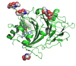 • Steiner RA, Kalk KH, Dijkstra BW (2002). "Anaerobic enzyme⋅substrate structures provide insight into the reaction mechanism of the copper-dependent quercetin 2,3-dioxygenase". Proc. Natl. Acad. Sci. U.S.A. 99 (26): 16625–30. Bibcode:2002PNAS...9916625S. doi:10.1073/pnas.262506299. PMC 139194. PMID 12486225.