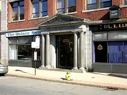 The Quincy Savings Bank building is a historic bank building at 1372 Hancock Street in Quincy, Massachusetts. Built in 1897, this four-story brick Classical Revival building is one of only two surviving 19th century commercial buildings in Quincy Center. Distinctive features include the granite quoining at the corners, and entrance portico with doubled Doric columns and a granite pediment. It was the fourth home for the bank, which was founded in 1845.[2] Quincy Savings Bank was acquired by Citizens Bank in 1995.