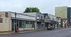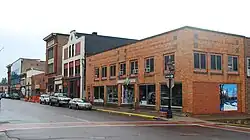 The Quincy Street Historic District covers the central portion of Hancock's business district consisting of the first three blocks of Quincy Street, plus two adjacent properties.[2] The district includes three governmental structures (the Hancock Town Hall and Fire Hall, post office, and a county office building) along with 42 commercial buildings.[2] The majority of the structures within the district were built between 1880 and 1915. The commercial buildings range from two to five stories, and are of frame, brick, or brick and stone construction.[2] The district is notable for the widespread use of local red Jacobsville sandstone.[2]
