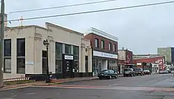 - First National Bank (1905) 240 Quincy Street. This building was originally constructed in 1905, but in 1913 the facade was renovated, converting it to a Neo-Classical style with limestone columns, entry pediment, and balustrade at the top.[9] A third story was added to the building in the 1940s.[9]