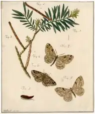 16. ^ Caterpillar, pupa and moth with pine twig; Q.M.R. Ver Huell, Handboek voor liefhebbers en verzamelaars van vlinders, Rotterdam 1842