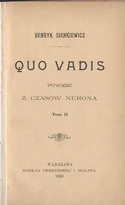 Quo Vadis: A Narrative of the Time of Nero (Quo vadis: Powieść z czasów Nerona) is a historical novel written by Henryk Sienkiewicz in Polish.[1]