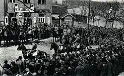 In the beginning of the German occupation, the occupiers carried out mass searches of homes of local policemen, postal workers and court employees.[4] In November 1940, the German gendarmerie carried out expulsions of Poles, whose houses were handed over to German colonists as part of the Lebensraum policy.[5]
