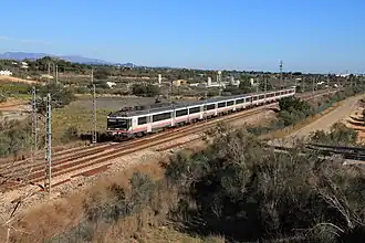 ![]() A 470 Series train on a R16 regional service to Tortosa near L'Aldea-Amposta-Tortosa in 2013. | |