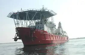 RV St. Barbara was a research vessel belonging to the Cypriot Mili Shipping Company, Ltd. Measuring 78.9 m in length with a 13.7 m beam, the St. Barbara is most noted for discovering the 265 meter long wreck of the famed Graf Zeppelin on 12 July 2006 near the port of Łeba. She was last engaged in geotechnical and exploratory work for the Polish oil company Petrobaltic and was scrapped in Liepāja on 16 August 2017.[1]
