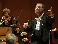 Rafael Frühbeck de Burgos (born Rafael Frühbeck; 15 September 1933 – 11 June 2014)[1][2] was a Spanish conductor and composer. Frühbeck was born in Burgos, Spain to a family of German ancestry. He first took up conducting while on military service in the Spanish Army before graduating from the Hochschule für Musik in Munich. Frühbeck was principal conductor of various orchestras around the world, starting with the Bilbao Symphony Orchestra from 1958 to 1962, then moving on to the Spanish National Orchestra, Yomiuri Nippon Symphony Orchestra of Tokyo and many others. Throughout his career Frühbeck de Burgos recorded on a number of labels. He was a member of the Academy of Fine Arts and History Institución Fernán González. His honours include the 2011 Conductor of the Year award from Musical America.