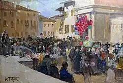 Fira a Feltre. Painting by Raffaele Tafuri