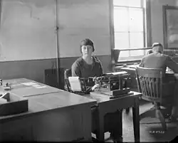 The two-story Master Mechanics Building was completed in 1882; it contained administrative offices and was the first home of the railroad's Test Department: physical and chemical testing laboratories inspired by those of European railroads. In 1886, a third story was added to the building, giving the Test Department two entire floors. Test Department workers helped the Pennsylvania Railroad achieve company-wide standardization through their analysis of materials used in railroad construction and maintenance. Railroad officials also used the laboratories for public relations; for example, Test Department employees gave demonstrations at the railroad's exhibit[38] at the 1893 World's Columbian Exposition in Chicago.[37][3] By 1909, the Master Mechanics Building had been expanded to four floors, but the Test Department needed yet more space, and in 1914, the department moved to its own building in the Altoona Works.