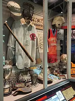 An exhibit at the Railroaders Memorial Museum displays sport-related artifacts.