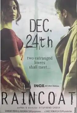 Raincoat is a 2004 Indian romantic drama film directed by Rituparno Ghosh, and starring Ajay Devgn and Aishwarya Rai. It tells the story of two lovers, separated by destiny, who meet again one day. This encounter allows each to realize the truth about the lives they are living. It is an adaptation of the short story Protihingsha (by Manoj Basu), although unacknowledged. Rather, the credits mention it to be based on The Gift of the Magi (by O. Henry).