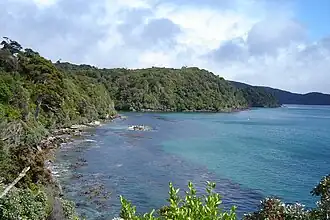 The popular Rakiura Track is within the national park. The track typically takes three days and two nights to complete, the track is 32 kilometres (20 mi) long. The track meanders through lowland kāmahi, tōtara and rimu forest. The track takes in Port William and the north arm of Paterson Inlet.[12][13] Rakiura kiwi is often seen at night time near the huts.[14][15][16]
