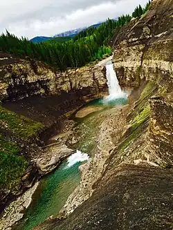The park is situated in the Canadian Rockies foothills, along the Ram River valley, in a section dominated by steep river banks with small lakes divided by waterfalls, at an elevation of 1,570 m (5,150 ft).