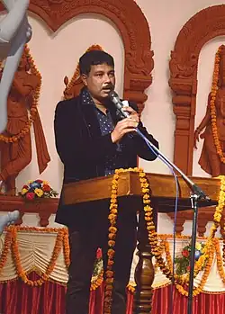 Sanskrit version of a number of patriotic Indian songs of the maestros like Rabindranath Tagore & Md. Iqbal,[4] Kazi Nazrul, Kavi Pradeep and so on.[5] Moreover, has been rendering his vocal to a few rare Hindi film songs with dignified lyrics & music encompassing K. L. Saigal to A. R. Rahman along with a few popular Ghazals and Bhajans.[6]