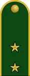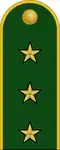 | Hadseregtábornok | Vezérezredes | Altábornagy | Vezérőrnagy | Ezredes | Alezredes | Őrnagy | Százados | Főhadnagy | Hadnagy | Alhadnagy | ||||||||||||||