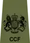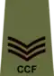 Cadet NCOs wear the issued cadet rank slides.[1] The titles of some ranks in the ACF and CCF Army may vary as cadet detachments are affiliated to British Army regiments and adopt their terminology. More senior cadet ranks may be restricted to a set number per area.