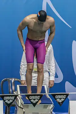 Raphaël Stacchiotti (born 9 March 1992) is a Luxembourgish swimmer, who specialized in the freestyle and individual medley events.[1][2] He is a four-time Olympian (2008, 2012, 2016 and 2020), a multiple-time Luxembourgian record holder in all freestyle and medley events, and a double European junior champion. Stacchiotti also holds numerous meet records and collects a total of 49 medals (40 golds, seven silvers, and two bronzes) from the Games of the Small States of Europe (2007, 2009, 2011, 2013, 2015, 2017 and 2019). At the 2008 Summer Olympics, Stacchiotti became the youngest athlete (aged 16) to be chosen by the Luxembourg squad, and was given the honor of carrying the nation's flag in the opening ceremony.