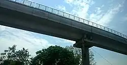 Construction work on Phase 2 began in April 2013, and was given an initial deadline of July 2015. However, the deadline was later revised to mid-2016, September 2016 and then the last quarter of 2016.[35] By June 2016, 75% of work on the Phase 2 was complete.[36] Trial runs were conducted along the 6.3 km (3.91 mi) Phase-2 route between in December 2016.[35] Rapid Metro authorities applied for inspection of phase II by the Commissioner of Metro Rail Safety in March 2017.[37] The second phase of the system was opened to the public on 31 March 2017.[38]