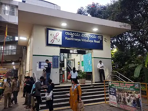 Rashtreeya Vidyalaya Road is an elevated interchange metro station on the north–south corridor of the Green Line and the east–west corridor of the Yellow Line of Namma Metro serving the 5th and 8th Block of Jayanagar area of Bangalore, India. It was opened to the public on 18 June 2017.[1]