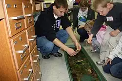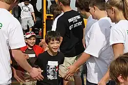 Student leaders welcome elementary students to the FFA chapter's Earth Day event, where first-grade students learn about the environment, conservation and agriculture.