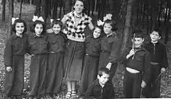 Thousands of Greek Macedonian, Pontic Greek, Caucasus Greek, Slavic Macedonian and Aromanian children were evacuated from the areas under communist control. A United Nations Special Committee on the Balkans (UNSCOB) report confirms that villages with an ethnic (Slavic speaking) Macedonian population were far more willing to let their children be evacuated.[10] They are now known as Децата Бегалци (Decata Begalci) "the Refugee Children" in North Macedonia and the ethnic Macedonian diaspora.[23] It is estimated that from 28,000 children to 32,000 children were evacuated in the years 1948 and 1949.[10] Exceptions were made for children under the age of two or three who stayed with their mothers while the rest should be evacuated. Many of these children were spread throughout the Eastern Bloc by 1950 there were 5,132 children in Romania, 4,148 in Czechoslovakia, 3,590 in Poland, 2,859 in Hungary and 672 had been evacuated to Bulgaria.[10]