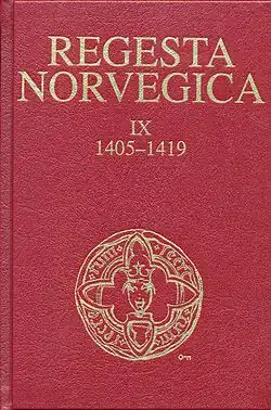 1. ^ "Regesta Norvegica". Store norske leksikon. Retrieved January 1, 2017.