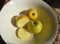 The Reinette Simirenko is an antique apple variety. The fruit has tender, crisp, greenish white flesh with a subacid flavor.[1] It was the most widely grown variety in the Soviet Union.[2]