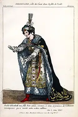 Costume sketch for the actor Ferdinand in the rôle of the Tsar in La Fille de l'exilé, given at the Théâtre de la Gaîté, 13 March 1819