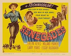 Renegades is a 1946 American Technicolor western film directed by George Sherman and starring Evelyn Keyes, Willard Parker, Larry Parks and Edgar Buchanan.[1][2] It was produced and distributed by Columbia Pictures.