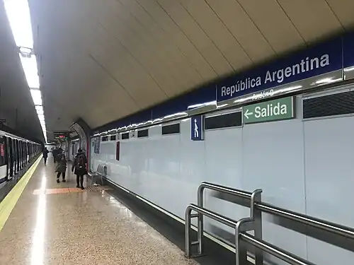 República Argentina [reˈpuβlika aɾxenˈtina] is a station on Line 6 of the Madrid Metro. The station is located beneath the Plaza de la República Argentina (Argentine Republic Square) in the neighborhood of El Viso in Chamartín district in fare Zone A.[1]