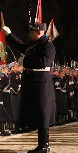 It was commissioned by the Bulgarian Government in 1878, with originally 20 Czech musicians led by Josef Chochola in the band. In 1892 this orchestra was transferred to Sofia from Veliko Tarnovo and was enlisted as part of the Bulgarian Life Guards Squadron. The first ethnic Bulgarian to be appointed as the chief conductor of the band was Maestro Georgi Atanasov.[1] In 1944, after the communist coup, the band was dissolved and the remaining musicians were sent to the town of Breznik. In 1951, the band was restored as the Central Brass Band of the Bulgarian People's Army. Since its restoration, the band's musicians wore regular infantry uniforms instead of the uniform of the guards unit. The guards band was reestablished in 2001, with its former status and original name.[2][3][4][5] [6]