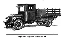 The Republic Motor Truck Company was a manufacturer of commercial trucks from 1913 to 1929, in Alma, Michigan. By 1918, it was recognized as the largest exclusive truck manufacturer in the world, and the maker of one out of every nine trucks on the roads in the United States.[2] It was one of the major suppliers of "Liberty trucks" used by American troops during World War I.