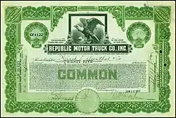 Share of the Republic Motor Truck Company, issued 19. June 1922