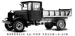 The company was already doing well by 1916, but the entry of the United States into World War I gave the company a further boost when it won one of the government's contracts to build several thousand of the so-called Liberty trucks.[3] In 1917, Republic purchased a major supplier, Torbensen Axle Company.