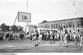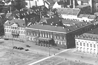 During the Allied bombing raids on the night of August 27–28, 1942, both palace buildings were severely damaged, burning down to their masonry.[1] Only the relocated furniture was saved.[1] The remains of the White palace were gradually removed until 1950.[2] While safety work on the Red Palace continued until 1953.[2] However, neither the Hessian state government nor the Kassel city administration showed interest in preserving the building.[2] Despite the fact that the palace ruins could have been restored, they were demolished in 1961.[2] The site was sold, and a department store, designed by Sep Ruf, was built in its place.[1] It The store housed "Bilka," short for Billig Kaufhaus English: cheap department store.[2]