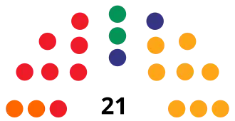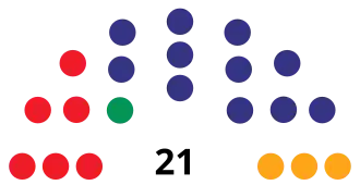 | Parties and alliances | Popular vote | Councillors | ||||
