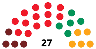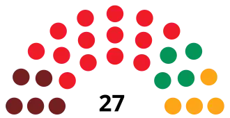 | Spanish Socialist Workers' Party (PSOE) | 13,404 | 40.81 | −23.83 | 11 | −6 | |