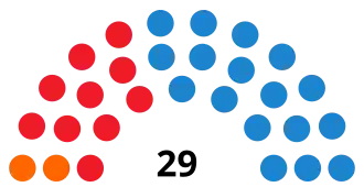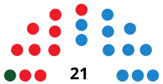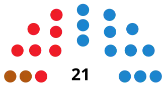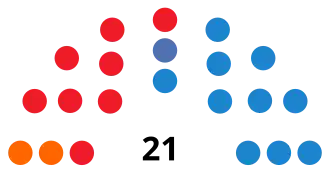 | Parties and alliances | Popular vote | Councillors | ||||