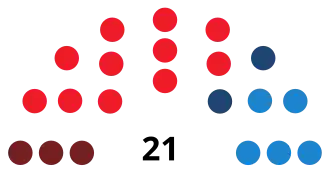 | Spanish Socialist Workers' Party (PSOE) | 7,433 | 41.52 | −1.30 | 11 | +1 | |
