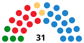 The following table lists party control in the most populous municipalities, including provincial capitals (shown in bold ).[ 1] Gains for a party are displayed with the cell's background shaded in that party's colour.