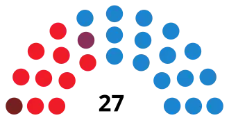 The following table lists party control in the most populous municipalities, including provincial capitals (shown in bold).[1] Gains for a party are displayed with the cell's background shaded in that party's colour.