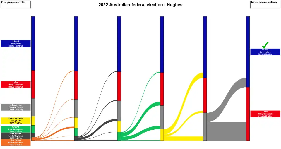 - ^ Hughes, NSW, 2022 Tally Room, Australian Electoral Commission.