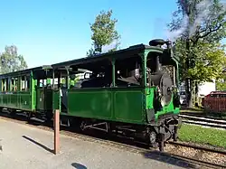 The VEB Lokomotivbau Karl Marx Babelsberg (LKM) built this steam locomotive, No. 991777-4. Today it pulls the locomotives on the Radebeul–Radeburg heritage railway in Germany.