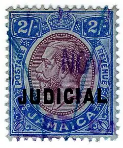 Jamaica issued many stamps for judicial purposes. The first issue consisted of Queen Victoria postage stamps overprinted with a large JUDICIAL in bold sans-serif capitals in 1898. This set was reissued with a different watermark in 1908. Similar issues followed in the following years, with the portrait being changed to that of King George V (1913), King George VI (1938) and Queen Elizabeth II (1953). In some cases, the stamps were from specially printed sheets which were never issued without the overprint. These include all of the stamps bearing the portraits of King George VI or Queen Elizabeth II. In 1969 the Queen Elizabeth II set was reissued denominated in decimal currency, and these remained in use until the 1970s.[2]