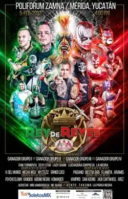 8. ^ a b c d e f Lucha Libre AAA Worldwide (January 18, 2023). "Listo nuestro cartel de #ReyDeReyes Nos vemos este 5 de Febrero Poliforum Zamna en Mérida, Yucatán 4 PM". Lucha Libre AAA Worldwide on Twitter. Retrieved January 18, 2023.